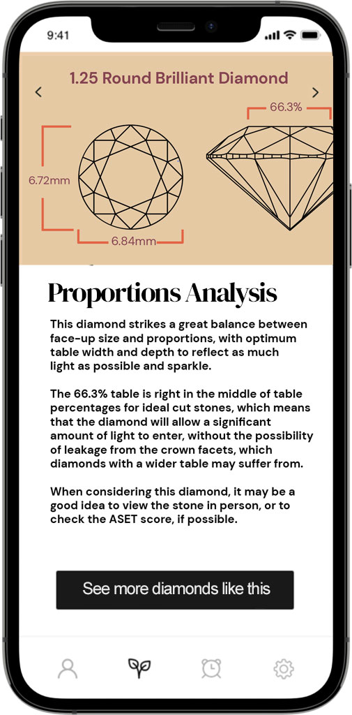 Our 'Sparkle Score' will help customers understand the light performance of the diamond they are assessing, regardless of the shape